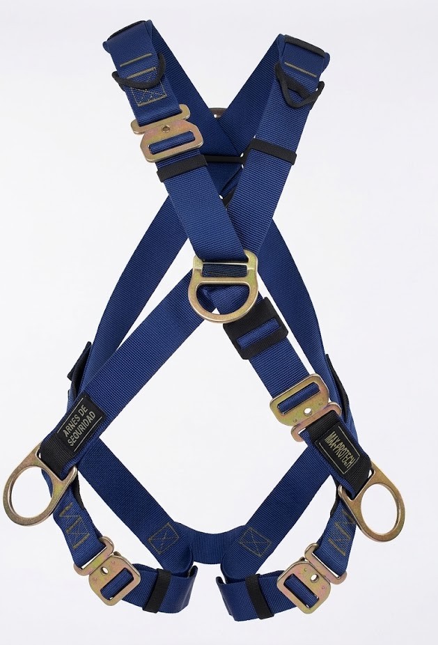 – Arnés avalado de acuerdo con norma elemento por elemento, en conjunto en prueba dinámica (simulando caída de cabeza y caída de pie) y estática de acuerdo a los requisitos de las normas referencia.