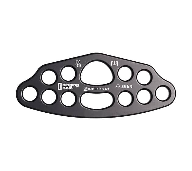 Los orificios redondeados permiten la fijación directa de las cuerdas a la placa de aparejo.
