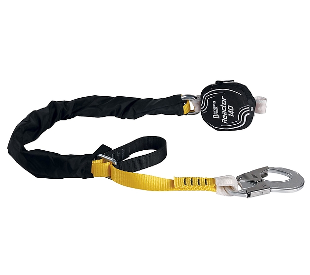Amortiguador con elemento de amarre regulable en longitud y tres opciones de conector. Diseñado para usuarios con un peso máximo de 140 kg (equipo incluido).